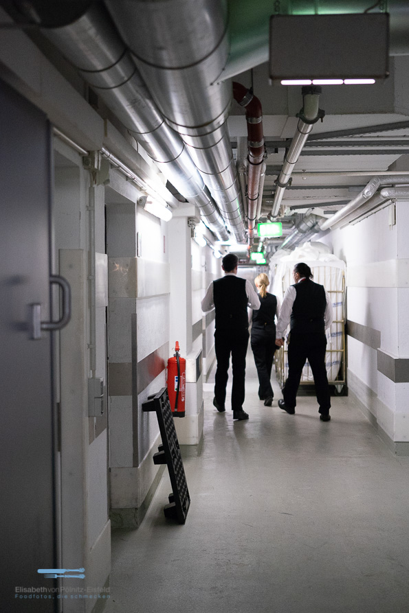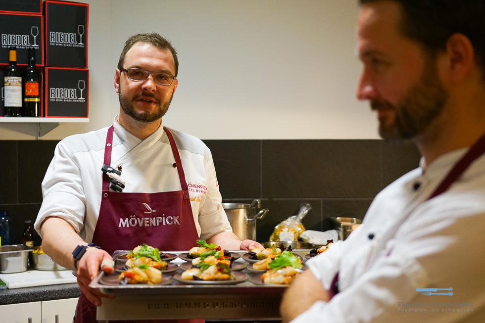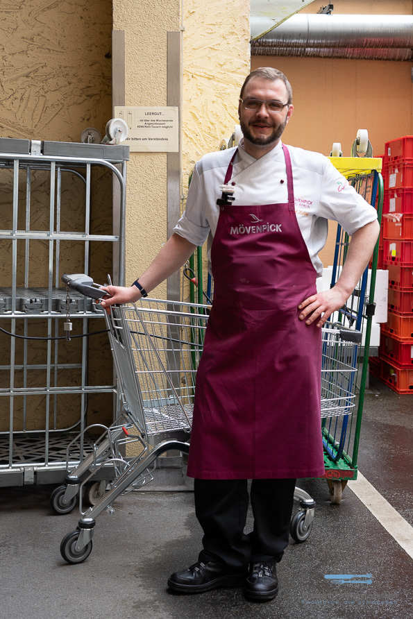 Vom Wareneingang durch die unzähligen (!) Kühlräume bis hin in das Herz, die Küche. Überall begegneten uns fröhliche Gesichter. Ich denke, das steht und fällt mit der ganz persönlichen Art, wie Daniel, ein Berliner durch und durch, seine Küche leitet. Er hat seine Kochausbildung bei Mövenpick gestartet und ist über viele Stationen jetzt Küchenchef im Mövenpick Hotel Berlin. Daniel ist der „Company“, wie er sie liebevoll nennt, wirklich verbunden. Das hörst man in jedem Satz.