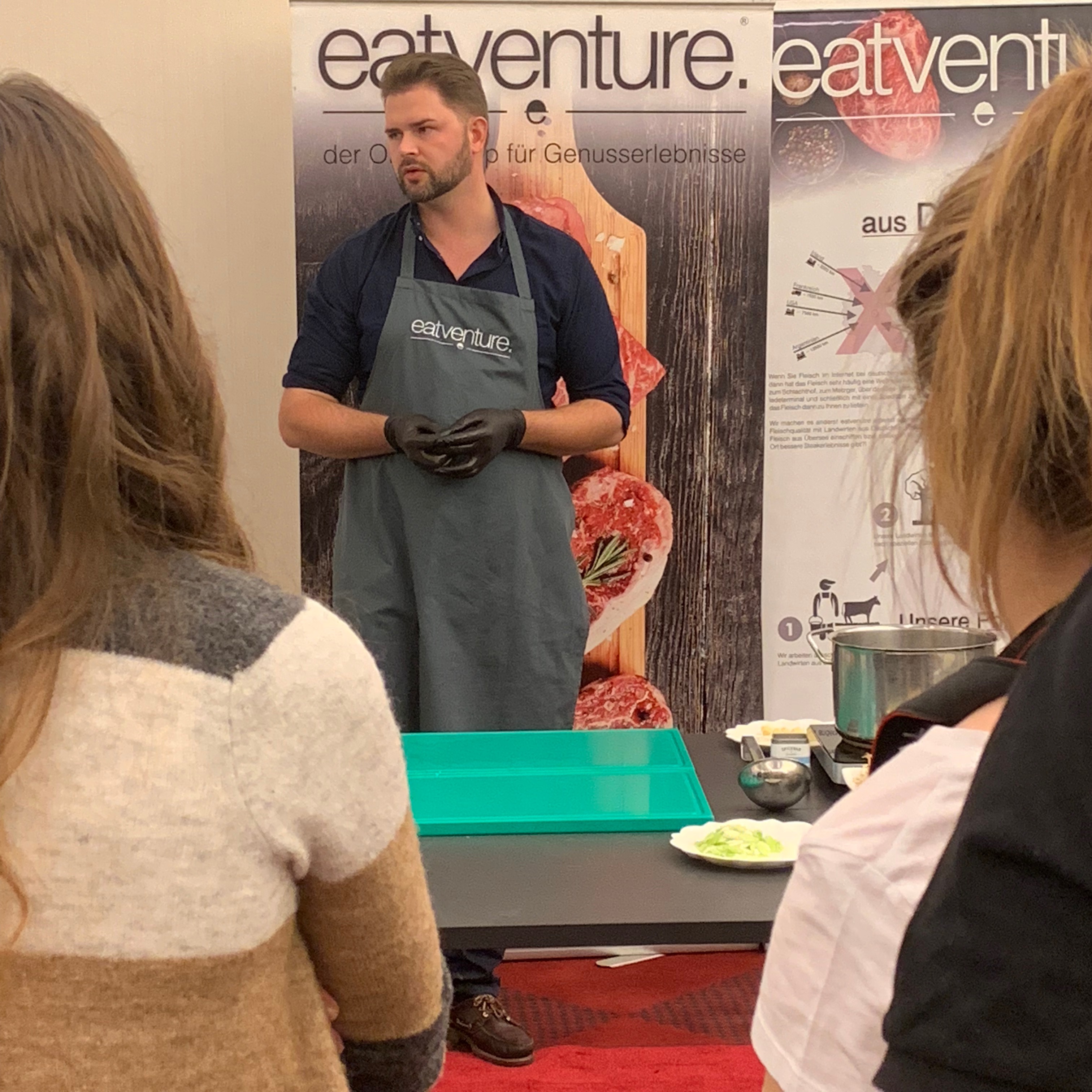Ein Höhepunkt war (unter vielen anderen) die „Dry aged Präsentation“ von „eatventure“ aus Werlte. David Schrand und Greta Wagener präsentierten ihr „dry aged Beef“ . Never-ever habe ich ein Fleisch gegessen, 133 Tage gereift, dass mir ohne Gewürz, nur mit etwas Solespray, auf der Zunge zerging. Einer Geschmacksexplosion gleichkommend! Da gibt es außer einem WOW nichts zu sagen. Oder doch: Ich werde ganz sicher bei Euch bestellen!