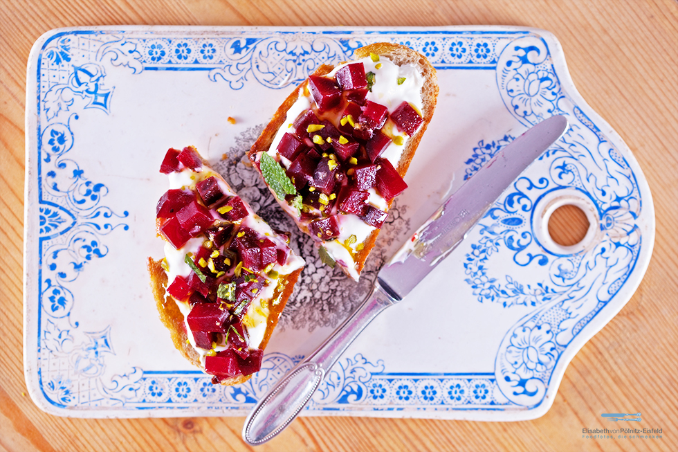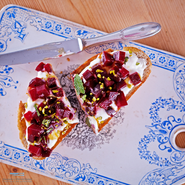 Rote Beete Toast oder "Roasted Beets on Toasts with Labneh and Saffron Honey" für Valentinas- Kochbuch.de. Hätte ich nicht gedacht - sehr fein!