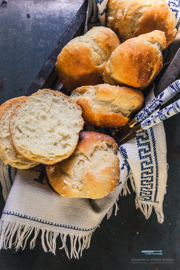 Auf ein mit Backpapier ausgelegtes Blech legen und nochmals gehen lassen. 6.Dabei den Backofen ordentlich vorheizen (Umluft 175 Grad). Meine Brötchen haben 25 Minuten gebacken. Um den Brötchenboden noch etwas knuspriger zu bekommen, habe ich sie die letzen 5 Minuten einfach umgedreht und so fertig gebacken.