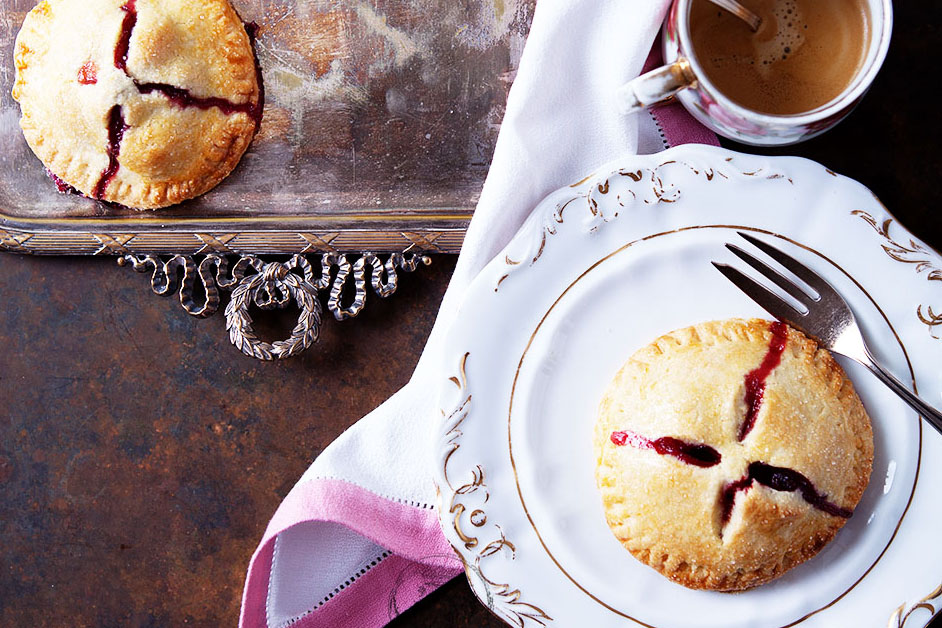 Erdbeer-Mini-Pies (ergibt ca. 12‒14 Mini-Pies) Mürbeteig: 200 g Butter 400 g Mehl 100 g Zucker 3 Eigelb 1 Prise Sal 3‒5 EL Wasser 300 g Erdbeeren, gewürfelt (man kann noch einige Blaubeeren dazugeben) 3 EL Zucker 2 EL Stärke Schale…
