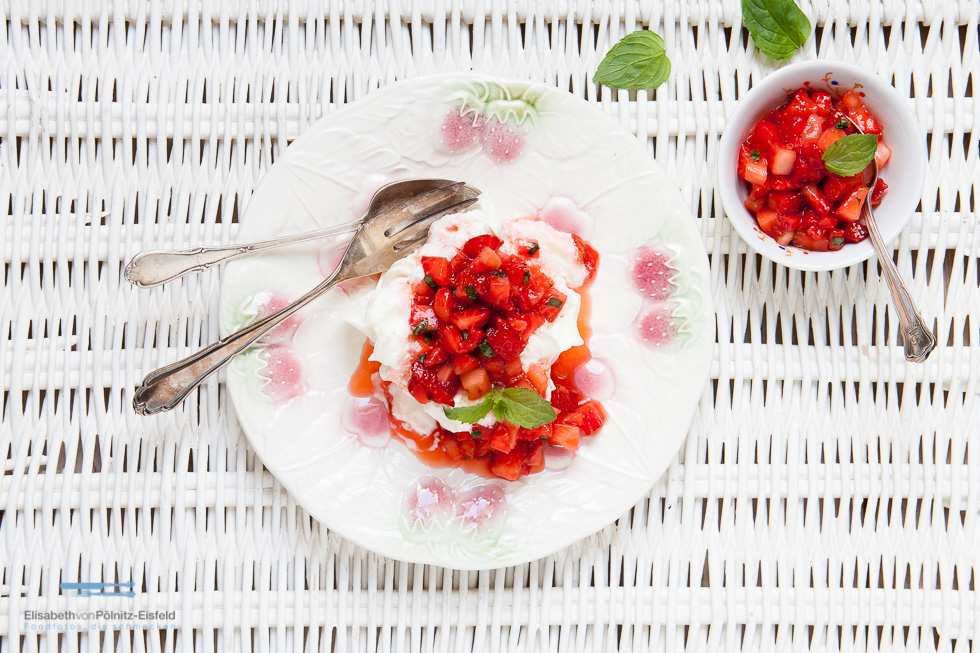 Wie wäre es mit diesem leichten Sommer-Dessert von Trine Hahnemann am Sonntag? Das Baiser ist schnell gemacht und die Erdbeeren-Minz-Salsa kannst Du gut vorbereiten! Die genauen Angaben findest du auf Valentinas: KLICK