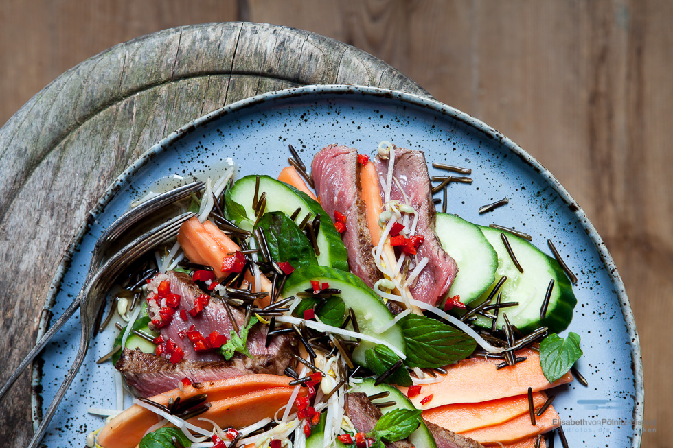 ...für uns ist diese Kombination völlig neu und (bis auf unsere Tochter) wir fanden den "Vietnamesischen Rindfleischsalat mit Wildreis und Papaya" ausgesprochen lecker! Das Rezept gibt es hier: KLICK Dankeschön der Firma Walküre und Liebesbier für die Leihgabe der Teller!
